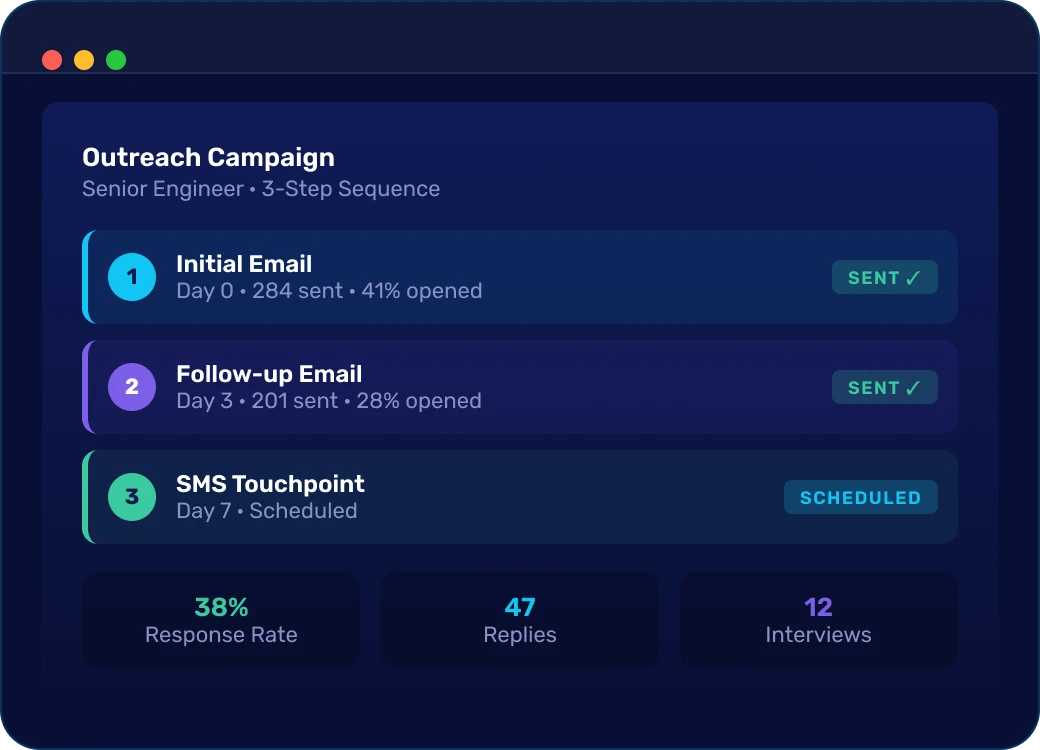 Multi-step AI-led campaigns via email and SMS — with full visibility into what's working at every stage of the sequence.