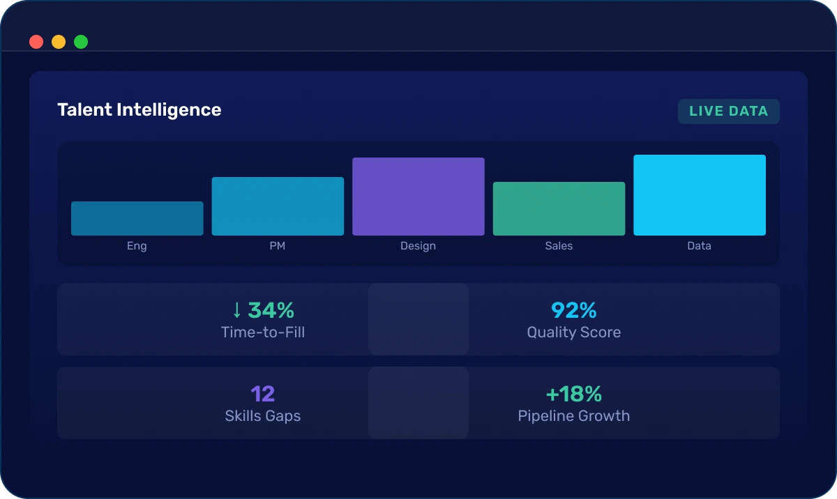 Give enterprise leaders the data they need to understand hiring performance, anticipate gaps, and make decisions backed by market intelligence.